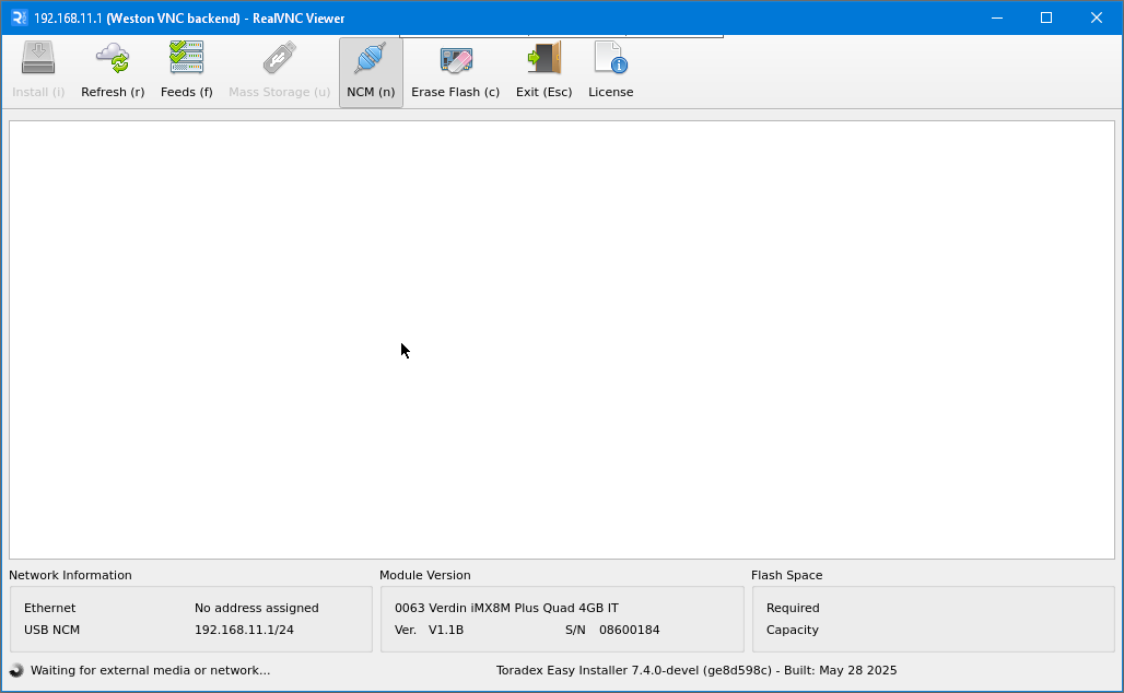 Je nach Zustand kann dieser Vorgang gegebenenfalls nur noch über einen VNC Viewer am PC überwacht werden. Die Verbindung zum PC erfolgt dabei über ein USB-C-Kabel.